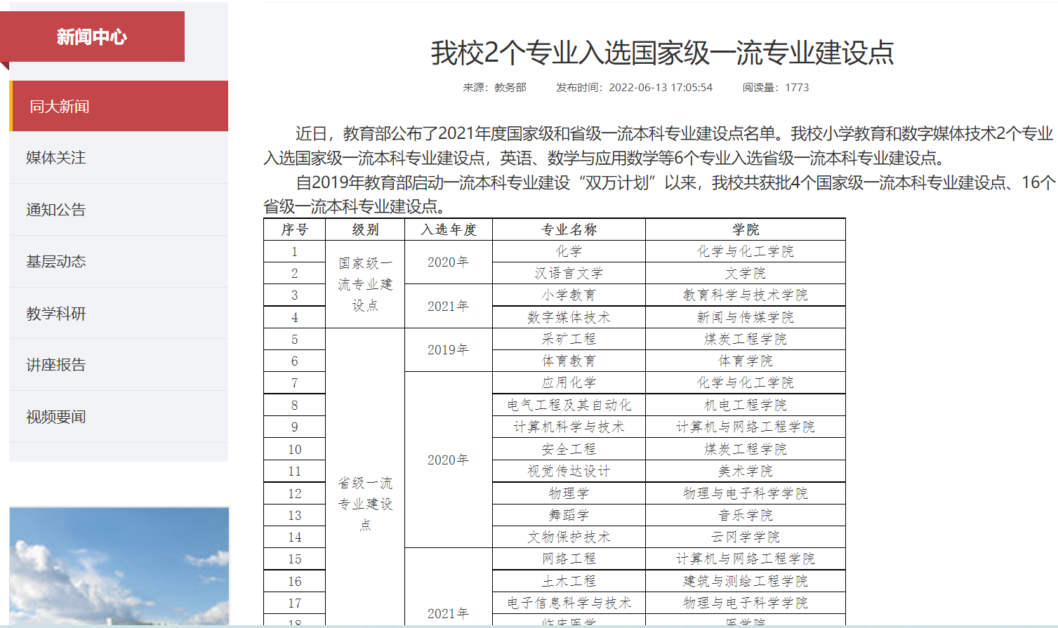自2019年教育部啟動一流本科專業(yè)建設“雙萬計劃”以來,我校共獲批4個國家級一流本科專業(yè)建設點、16個省級一流本科專業(yè)建設點。