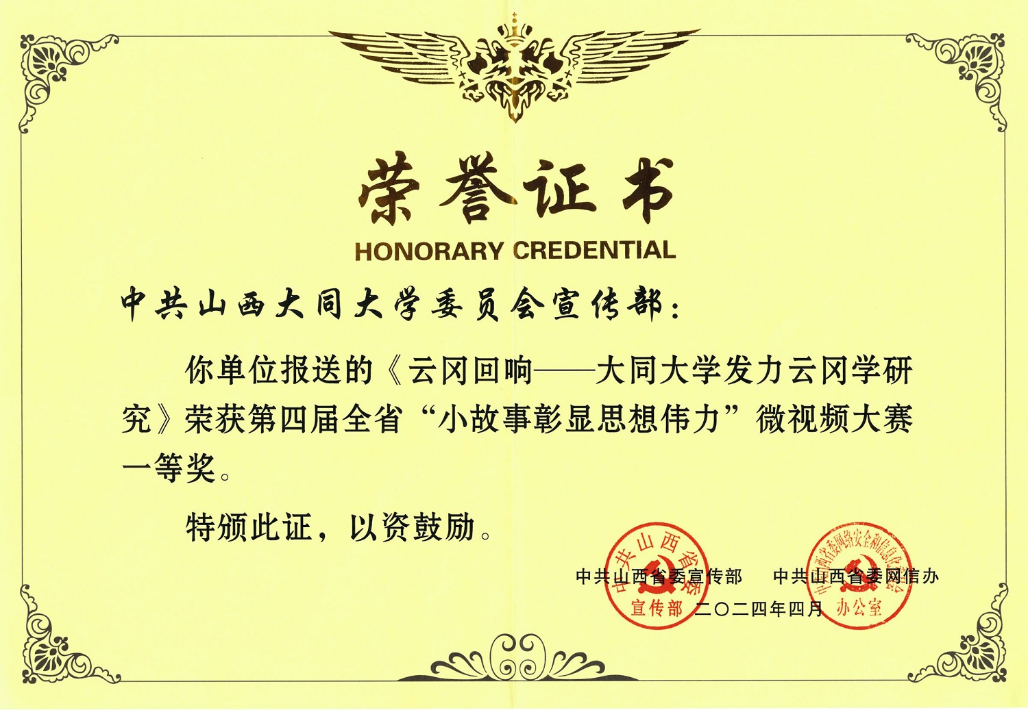 7月10日,第五屆全省“小故事彰顯思想偉力”微視頻征集展示活動啟動儀式在山西省社會主義學(xué)院舉行,并為第四屆全省“小故事彰顯思想偉力”微視頻征集展示活動獲獎作品頒獎。全省共計報送作品500多部,其中8部作品榮獲一等獎,由校黨委宣傳部組織策劃,與馬克思主義學(xué)院、新聞與傳媒學(xué)院共同創(chuàng)作的《云岡回響》獲得一等獎并成為全省高校唯一獲獎作品。