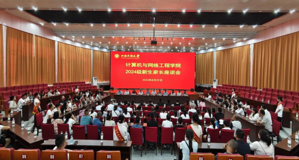 為增進家長對學校和學院的了解,形成濃厚的家校育人氛圍,更好地幫助學生成長成才。8月29日下午,計算機與網絡工程學院在慎思樓報告廳組織召開“家校共育啟智潤心”2024級新生家長座談會。會議由學院黨委書記葛振斌主持,學院院長宋曉霞、黨委副書記張占成、副院長楊澤民、科級干部、專兼職輔導員和2024級學生家長代表140余人參會。