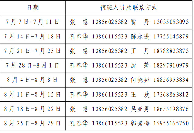 一、暑期輪休時(shí)間為:7月5日—8月31日,9月1日(周一)正式上班。