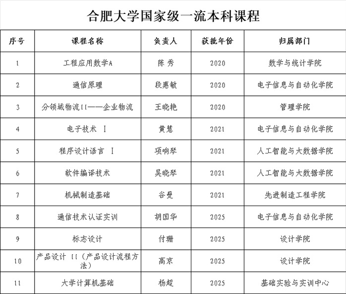近日,教育部發(fā)布了《教育部關(guān)于公布第三批國(guó)家級(jí)一流本科課程認(rèn)定結(jié)果的通知》(教高函〔2025〕9號(hào)),我校共有4門(mén)課程認(rèn)定為國(guó)家級(jí)一流本科課程,至此我校已有國(guó)家級(jí)一流本科課程11門(mén),其中線(xiàn)上一流課程2門(mén),線(xiàn)上線(xiàn)下混合式一流課程5門(mén),線(xiàn)下一流課程4門(mén)。