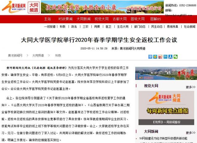 下一步,大同大學醫學院將按照大同大學2020年春季學期開學返校報到安排,通過開展返校工作調研、方案研究、附屬醫院走訪、健康動態監測等多種途徑,精心做好疫情防控和學生返校工作,確保學生返校平穩有序。