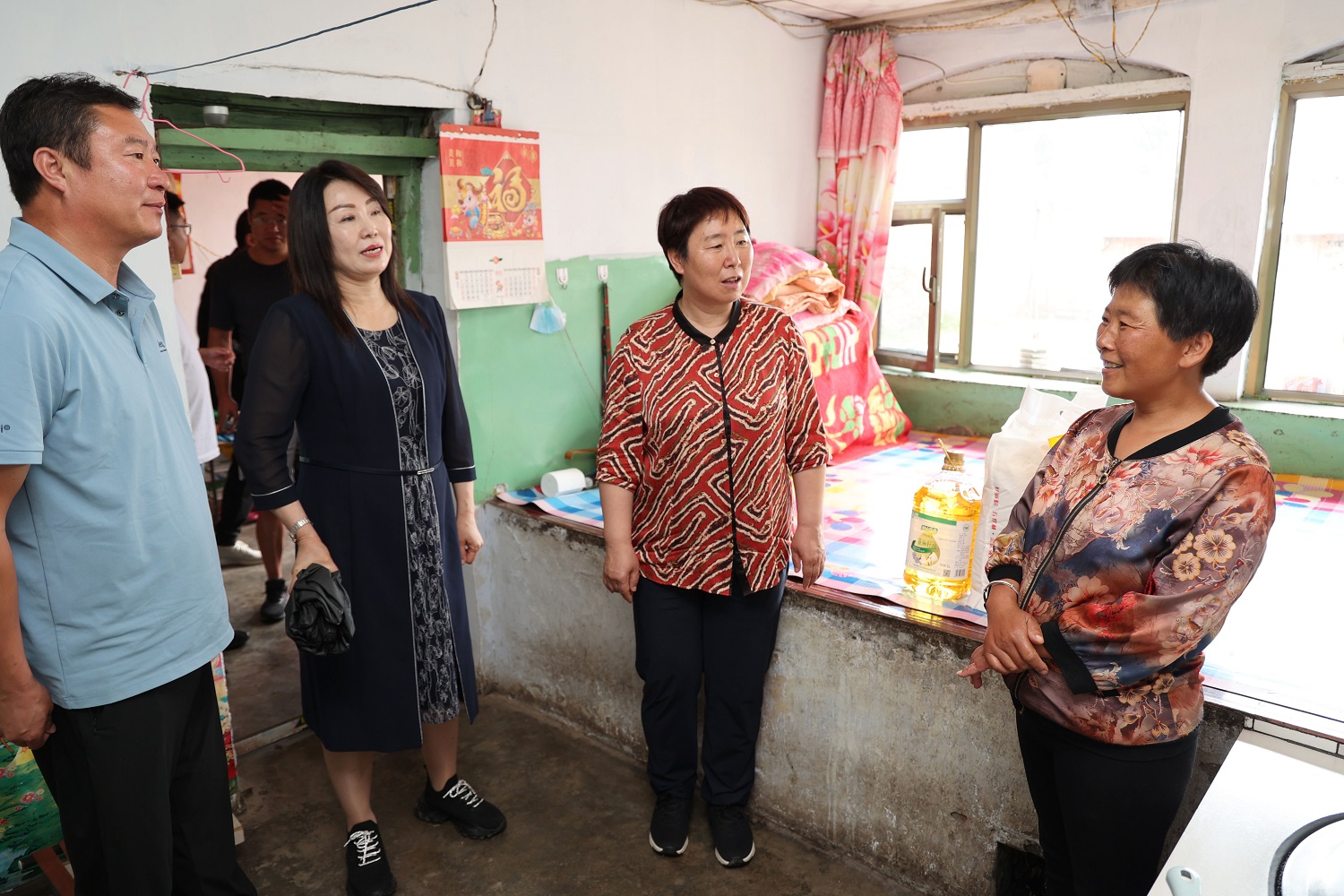 姚麗英一行首先來到鎮門堡村,在村級組織活動場所,姚麗英代表學校為村民捐贈了音響設備,希望以此豐富村民的娛樂文化生活。隨后,領導們冒雨走訪了鎮門堡村、七墩村的幫扶對象,為他們送上慰問品。“收入如何、身體怎么樣、對我們的幫扶工作有什么建議……”姚麗英與村民們親切交談,事無巨細地詢問他們的生活情況,表示學校會進一步加大幫扶力度,帶動村民增收致富,共同創造更加美好的生活。村民們歷數著大同大學的各種幫扶政策,對學校的幫扶工作給予高度贊揚,對黨和政府以及大同大學的感激之情、對未來美好生活的憧憬之情溢于言表。