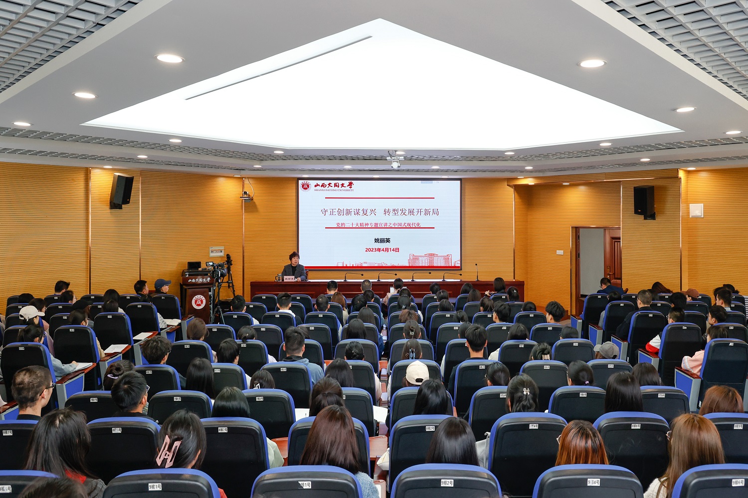 姚麗英圍繞“黨的二十大報(bào)告關(guān)于中國(guó)式現(xiàn)代化的重要論述”“中國(guó)式現(xiàn)代化的山西‘轉(zhuǎn)型故事’”“中國(guó)式現(xiàn)代化的太原、大同‘雙城記’”這三個(gè)重點(diǎn),闡述了推進(jìn)中國(guó)式現(xiàn)代化是一項(xiàng)前無(wú)古人的開創(chuàng)性事業(yè),必然會(huì)遇到各種風(fēng)險(xiǎn)挑戰(zhàn)、艱難險(xiǎn)阻甚至驚濤駭浪,必須增強(qiáng)憂患意識(shí),堅(jiān)持底線思維,居安思危、未雨綢繆,敢于斗爭(zhēng)、善于斗爭(zhēng),通過(guò)頑強(qiáng)斗爭(zhēng)打開事業(yè)發(fā)展新天地。她緊密結(jié)合青年學(xué)生的思想實(shí)際、學(xué)習(xí)實(shí)際和生活實(shí)際,激勵(lì)全體教師要把黨的二十大精神落實(shí)到高等教育發(fā)展各方面、全過(guò)程,堅(jiān)持為黨育人、為國(guó)育才,激勵(lì)同學(xué)們要牢記奮斗歷程,擔(dān)當(dāng)歷史使命,立志做有理想、敢擔(dān)當(dāng)、能吃苦、肯奮斗的新時(shí)代好青年。