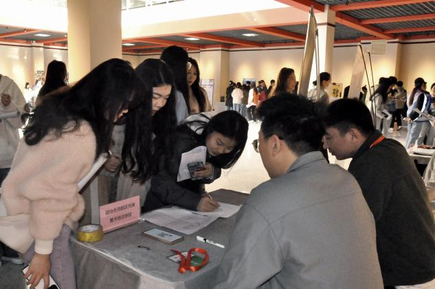 ? 為了扶持和促進(jìn)應(yīng)屆畢業(yè)生就業(yè),為企業(yè)選聘人才搭建對接平臺,4月14日上午,美術(shù)學(xué)院于善美樓舉行畢業(yè)生招聘會。校黨委常委、副校長石鳳珍出席,美術(shù)學(xué)院師生參加,會議由美術(shù)學(xué)院院長楊州主持。石鳳珍宣布招聘會開始。