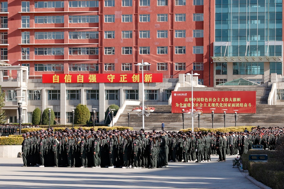 雖然還沒有立夏,但頭頂的烈日當空,大同的晚春已經有了炎炎夏日的感覺。7000余名2021級學子們的熱情卻并沒有因為炎熱而有絲毫的衰減,精神抖擻地參與到了各個項目訓練當中。整理儀容儀表、站軍姿、隊列訓練,同學們都能做到一絲不茍。高溫酷暑中,有的學生身體堅持不住,但她們只是稍作休息,立馬又回到了隊列之中。在教官們親切的關懷和嚴格訓練下,在短短的兩天里,齊步走、正步走、集合等預定訓練科目已初見成效。教官手把手教,學生認真的學,在隊列訓練中,方隊整齊,精神飽滿,步伐矯健、口令準確、聲音嘹亮。軍訓只是校園生活的一段小插曲,但是,軍訓中學會的東西會讓大家受用一輩子,這些深于海的烙印、這些揮之不去的時光,定會在每一個充滿青春活力的生命中綻放出光彩。