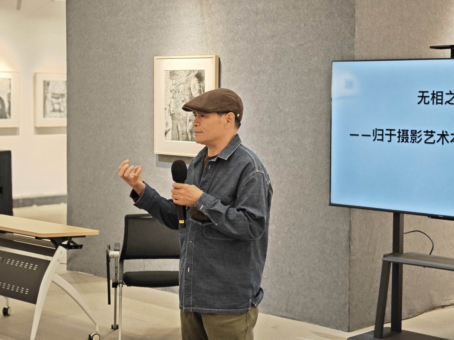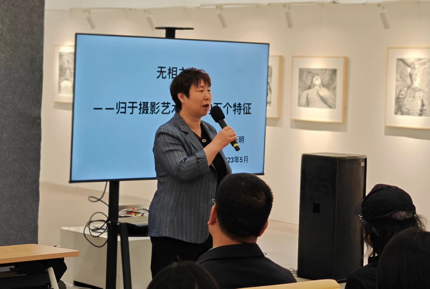 張玉明的講座《無相之象——歸于攝影藝術本身的五個特征》從被稱為美國當代攝影家薩考夫斯基提出的“它本身、框取、細節、時間、優勢點”5個攝影藝術共同特征入手,深入分析了攝影語言作為藝術與哲學的內在關聯。他認為,照片和照片上的事物之間的聯系是不確定的,因為它印證的是藝術家的內心。攝影家的信息純粹是視覺化的,“照片中表現的任何含義只能看不能說”;不相干的事物框取在一個畫面內也能產生新的象征,這就是其框取的作用和意義所在;由形狀、線條、明暗、質感、趣味中心組成的“細節”,是拍攝對象“固有”的,而不是像繪畫那樣是“給予”的;照片是對時間流的截取,也就是某個時間段的表達;其“優勢點”在于把俯視與仰視、長焦與廣角、隱藏在影子里,通過玻璃的反光,帶給我們不同凡響的攝影經驗。