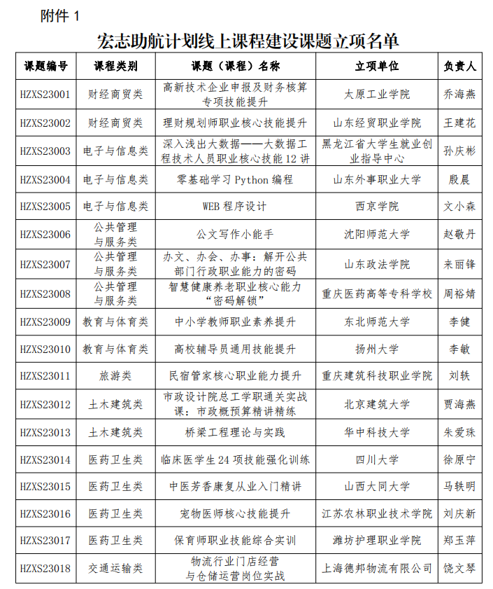 2023年教育部宏志助航計劃線上課程建設課題立項名單
