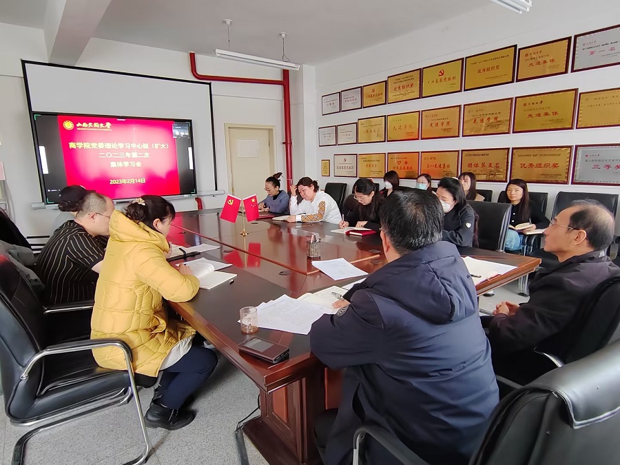 商學院始終堅持把黨建作為首要任務,將理論學習擺在突出位置,深入學習貫徹黨的二十大精神、習近平新時代中國特色社會主義思想、黨中央、省教育廳以及校黨委決策部署,將“第一議題”與學院黨委會議、中心組學習、“三會一課”等各類學習活動相互融合、相得益彰。