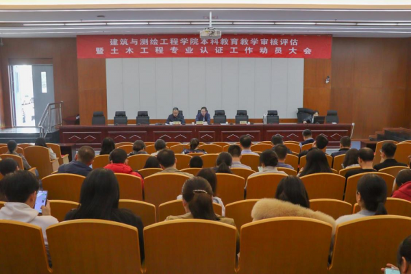 當(dāng)前位置:為全面深化本科教育教學(xué)改革,切實(shí)提高應(yīng)用型人才培養(yǎng)質(zhì)量,以起步即“沖刺”的狀態(tài),全速全面推進(jìn)審核評(píng)估工作和一流專業(yè)認(rèn)證工作,切實(shí)做到以評(píng)促建、以評(píng)促改、以評(píng)促管和以評(píng)促強(qiáng)。3月26日下午,建筑與測(cè)繪工程學(xué)院在新平旺校區(qū)圖書館報(bào)告廳召開了學(xué)院本科教育教學(xué)審核評(píng)估暨土木工程專業(yè)認(rèn)證工作動(dòng)員大會(huì)。學(xué)院黨委書記馬云波出席會(huì)議并講話,學(xué)院全體教職工參加此次動(dòng)員會(huì),會(huì)議由副院長徐廣翔主持。