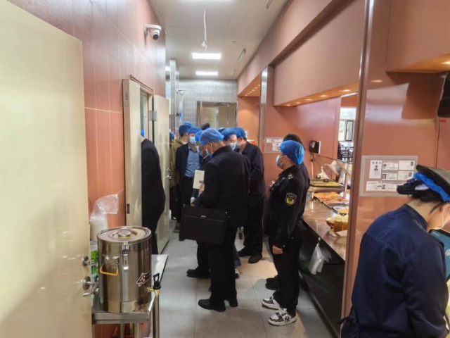 2024年3月31日,省校園食品安全排查整治專項行動跨市交叉檢查組進校開展食品安全檢查,重點檢查了餐廳采購、食品加工、餐具消毒、食材驗收、加工等重要環(huán)節(jié)食品安全情況,和學校食品安全“兩個責任”工作落實情況。大同市市場監(jiān)督管理局副局長賀勝利,校黨委常委、副校長張旻及后勤管理部有人員一同檢查。