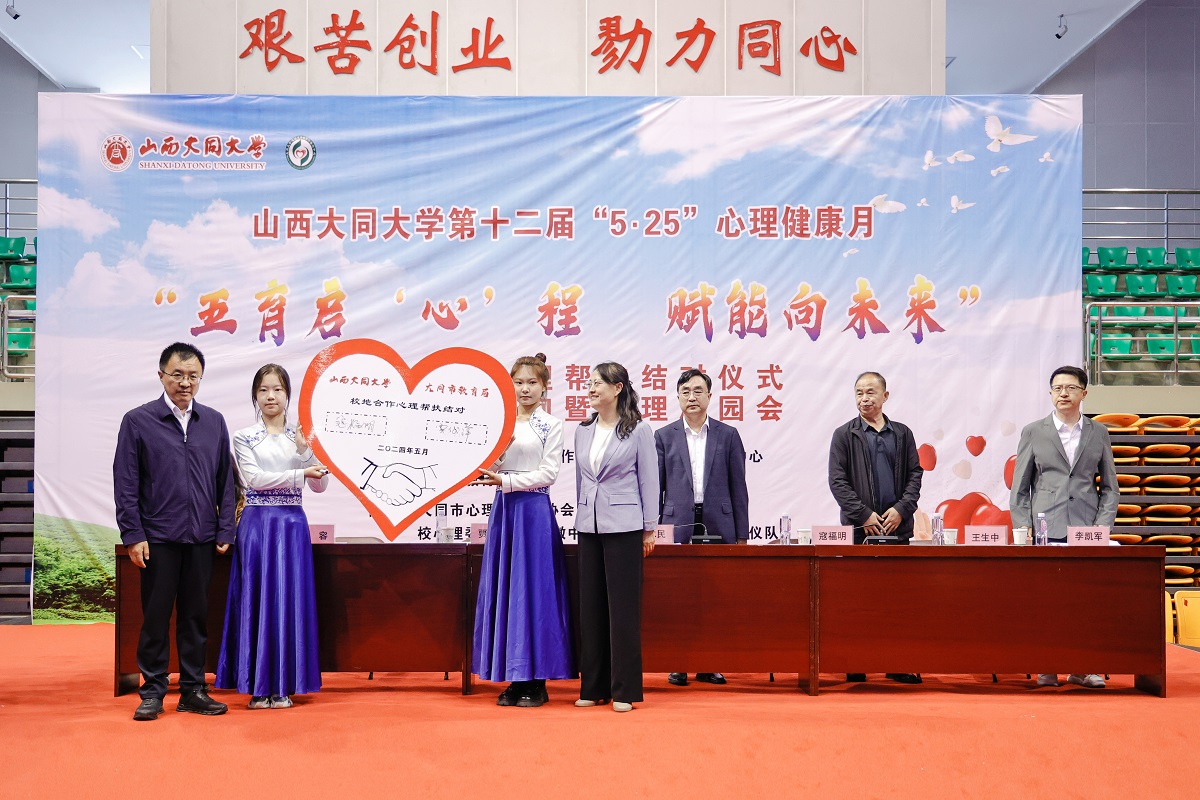 5月25日,山西大同大學第十二屆“5·25”“五育啟‘心’程,賦能向未來”心理健康月之校地合作心理幫扶結對暨心理游園會活動于天翔體育館內舉行,新平旺校區相關活動于5月26日開展。此次活動由山西大同大學與大同市教育局聯合主辦。