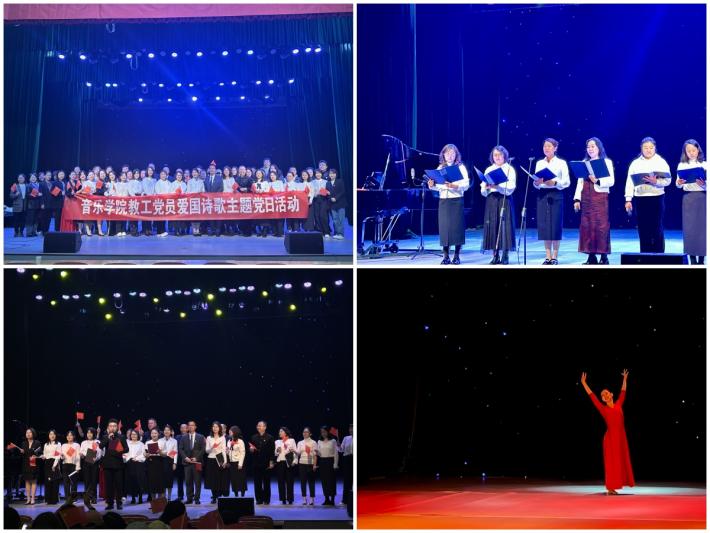 ?10月17日下午,音樂學院在音樂廳舉行了“迎國慶 頌黨恩鑄師魂”教工黨員愛國詩歌主題黨日活動,學院黨委書記李凌雁、副院長溫旭偉、全體教師黨員和學生黨員參加了此次活動。
