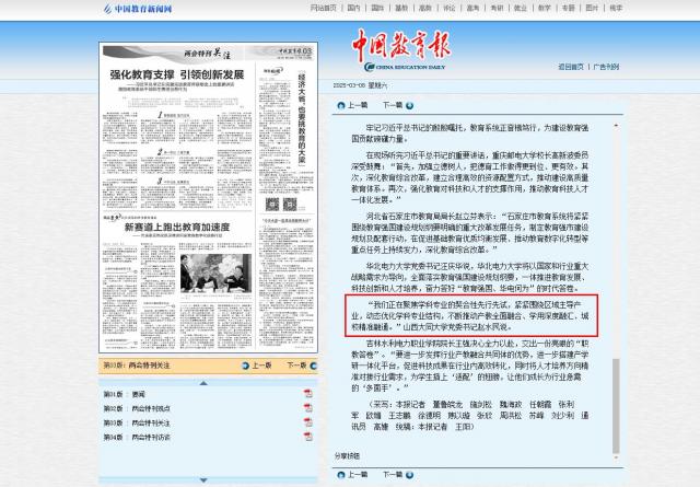 1擘畫藍圖指引方向 建設教育強國、科技強國、人才強國的宏偉藍圖已然繪就,教育系統正錨定教育強國的航向奮力前行。 中國工程院院士、中國石油大學(北京)教授張來斌委員現場聆聽了習近平總書記的重要講話,倍感振奮?!拔覀円鋵嵙⒌聵淙烁救蝿?,把德育貫穿于智育、體育、美育、勞動教育全過程,深化教育綜合改革,推動建設高質量教育體系,強化科研和育人協同發展,實現科技自主創新和人才自主培養的良性互動。” “習近平總書記的重要講話為教育改革發展指明了方向。我們要高度重視立德樹人?!北本┦形逃の睍洝⑹薪涛魅卫钷缺硎?,北京市近年來堅定落實黨的教育方針,關注孩子的身心健康,推動課間一刻鐘改革,出臺體育新八條。做好科學教育加法,探索拔尖創新人才培養的新途徑。堅持把思政之“鹽”撒向學校教育教學及管理服務的全過程、各領域,讓思政教育春風化雨、潤物無聲。 “在不久的將來,會有更多像DeepSeek(深度求索)一樣開啟新紀元的新技術由中國自主培養的人才創造。我們一定能形成人才輩出、人盡其才、才盡其用的生動局面。”濟南市委教育工委常務副書記,市教育局黨組書記、局長王纮說,濟南將緊密圍繞教育強國建設目標,推進教育科技人才一體化發展,為培育新質生產力注入人才動能。 “作為一名科技工作者,我深受鼓舞。我將與廣大教育科技工作者一起,立足學科前沿開展教學科研,培養學生自主探索的精神和獨立思考的能力,著力造就拔尖創新人才,強化教育對科技和人才的支撐作用?!敝袊茖W院院士、復旦大學化學與材料學院院長趙東元說。 致公黨河南省委會副主委、鄭州大學副校長劉春太深有感觸地說:“我們將發揮鄭州大學‘雙一流’建設的創新溢出效應和科技支撐作用,形成科研與產業、創新與育人的有機結合。” 2統一共識匯聚力量 理想信念鑄就教育之魂,“教育要進一步發揮先導性、基礎性支撐作用”已成為教育系統廣大干部師生堅定不移的信念。 如何發揮教育對科技和人才的支撐作用?中國科學院院士、北京航空航天大學教授郭雷代表認為,強國建設需要什么人,我們就培養什么人。要精細育人、因材施教,特別要讓奇才脫穎而出。還要開放育人,要打破行業、專業、門類限制,培養具有多學科交叉、全鏈條創新能力的復合型人才。 在安徽大學黨委書記虞寶桃看來,推進高校治理體系和治理能力現代化是服務新時代教育強國戰略、推動高等教育內涵式發展的重要保證。“我們要依法辦學、依章治校,用法治思維和法治方式抓好學校治理。建立健全以大學章程為統領的制度體系,堅持用制度管權、按制度辦事?!庇輰毺艺f。 如何為國家培育更多的創新型人才?天津市第一中學校長楊靜武認為:“高中要以培養創新型人才為己任,鼓勵學生樹立遠大理想,努力實現人生價值。要重視發展學生的科研志趣,通過職業生涯教育把科研志趣轉化為學生的職業方向,激發學生自主發展的內驅力?!?/p> 當下,中國的科技創新正從實驗室走向“應用場”。北京大學新聞與傳播學院2023級博士生張文杰心潮澎湃地說:“‘人工智能大模型’正在改寫人類的認知圖式,這些科研命題正是值得我們這代青年深耕的領域。我們應讓創新真正服務于國家戰略和人民生活?!?/p> 3干字當頭挺膺擔當 牢記習近平總書記的殷殷囑托,教育系統正奮楫篤行,為建設教育強國貢獻磅礴力量。 在現場聽完習近平總書記的重要講話,重慶郵電大學校長高新波委員深受鼓舞:“首先,加強立德樹人,把德育工作做得更到位、更有效。其次,深化教育綜合改革,建立合理高效的資源配置方式,推動建設高質量教育體系。再次,強化教育對科技和人才的支撐作用,推動教育科技人才一體化發展?!?/p> 河北省石家莊市教育局局長趙立芬表示:“石家莊市教育系統將緊緊圍繞教育強國建設規劃綱要明確的重大改革發展任務,制定教育強市建設規劃及配套行動,在促進基礎教育優質均衡發展、推動教育數字化轉型等重點任務上持續發力,深化教育綜合改革?!?/p> 華北電力大學黨委書記汪慶華說,華北電力大學將以國家和行業重大戰略需求為導向,全面落實教育強國建設規劃綱要,一體推進教育發展、科技創新和人才培養,奮力答好“教育強國、華電何為”的時代答卷。 “我們正在聚焦學科專業的契合性先行先試,緊緊圍繞區域主導產業,動態優化學科專業結構,不斷推動產教全面融合、學用深度融匯、城校精準融通?!鄙轿鞔笸髮W黨委書記趙水民說。 吉林水利電力職業學院院長王強決心全力以赴,交出一份亮眼的“職教答卷”。“要進一步發揮行業產教融合共同體的優勢,進一步搭建產學研一體化平臺,促進科技成果在行業內高效轉化,同時將人才培養方向精準對接行業需求,為學生插上‘適配’的翅膀,讓他們成長為行業急需的‘多面手’?!?/p> (采寫:本報記者 董魯皖龍 施劍松 魏海政 任朝霞 張利軍 歐媚 王志鵬 徐德明 焦以璇 張欣 周洪松 蘇峰 劉少利 通訊員 高婕 統稿:本報記者 王陽) |