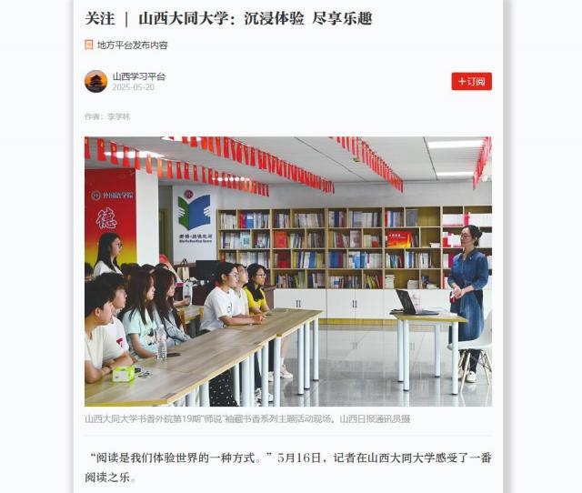 “閱讀是我們體驗(yàn)世界的一種方式。”5月16日,記者在山西大同大學(xué)感受了一番閱讀之樂。