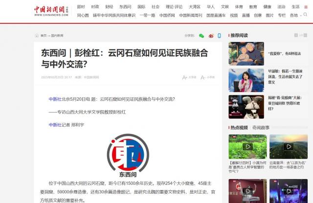哪些造像題記記錄了正史中沒有涉及的內容?哪些題記、窟龕、佛像體現了中華各民族交往交流交融的歷史?外來文化如何在這里與中國傳統藝術風格交相輝映?山西大同大學文學院教授彭栓紅就此接受中新社“東西問”專訪。